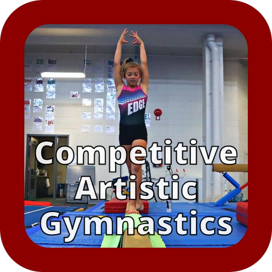 Competitive Women’s Artistic Gymnastics consists of four events: vault, uneven bars, beam and floor. The competitive gymnasts train and compete under the Canadian Competitive Program (CCP). These athletes work hard to develop their flexibility, strength and skills on each of the events.